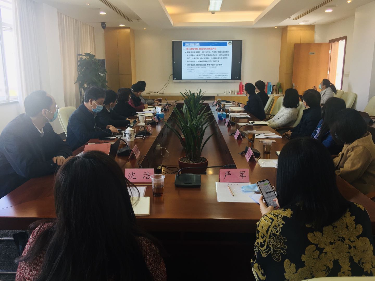俞建勇在会上指出,高校落实立德树人根本任务,课程思政建设至关重要。经过两年多建设,学校课程思政建设卓有成效。就下一阶段课程思政深化推进,他提出三点要求:一是进一步加强思想认识,提升课程思政在学校整体发展中起的基础性、关键性作用。要以学科建设为统领,把课程思政与政治引领、高水平人才队伍建设、三全育人等结合起来,抓好课堂教学主阵地,推动思政工作向纵深发展。二是深化课程思政体系建设,将价值引领与知识传授有机结合起来。要以课程建设为着力点,打造思政“金课”,在内容建设、融入手段和结合方式等方面进一步深化,建立思政教学资源库,以学生喜闻乐见的方式展开教学,真正实现教育的内化;要加强“金师”建设,提高教师队伍的思想政治水平,提升对课程思政的认识度和参与度,加强包括辅导员在内的教师团队建设,提高教学质量;加强课程思政总体价值导向引领,建立考核评估标准体系,加强课程指南建设,明确教学目标、教学内容、教学手段,全面提升课程思政建设水平。三是加强课程思政顶层设计,从学校和二级单位层面强化体系化、规范化建设,不断深入探究课程思政教学规律,努力践行立德树人根本任务,进一步发挥课程思政在加强大学生思想政治教育方面的重要作用。